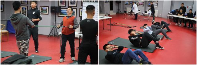 本次活动中,通过专业指导老师的讲解,各位男教职工深入了解了男性健身训练的好处:增加肌肉力量并缓解日常生活工作的疲劳,同时预防心脑血管疾病的发生,改善肥胖带来的问题。在提高个人形象及缓解压力方面亦有很好的效果。针对本校男教职工在日常工作中压力大、办公室久坐、无运动基础等情况,专业指导老师为大家制定了一套适合男教职工在办公室使用便携器械或者无器械练习的健身计划,在现场请男教职工示范体验,并进行动作纠正与指导。
