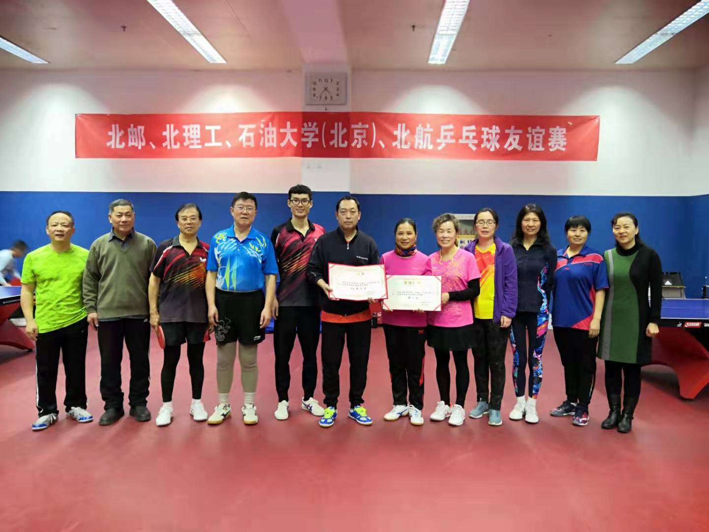 1月3日下午,由北京邮电大学、北京理工大学、中国天天色天天(北京)、北京航空航天大学四所高校工会联合举办的“2020年四所高校乒乓球协会友谊比赛”在北京邮电大学体育馆举行,来自四所高校的50余名选手参加了比赛。中石大参赛队伍取得女子团体第一名、男子团体第三名的佳绩。
