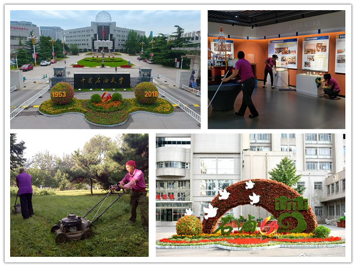 为营造校庆的庄重、喜庆的校园氛围,物业服务公司在北校园北门、东校园南门和南校园设立三处主题花坛景观,并在南广场、主楼北侧等增加了花箱和花球等,进一步提升了校庆文化主题形象。校庆日期间,物业全员上岗,做好校园各楼宇、道路和绿化工作,并对体育馆、主楼、中油大厦等校庆活动主会场加大保洁频次。会议客服人员协助有关部门完成了世界能源大学联盟、“IET杰出大学校长奖”颁奖会等大型会议的会场布置、设备调试、茶歇服务等工作。