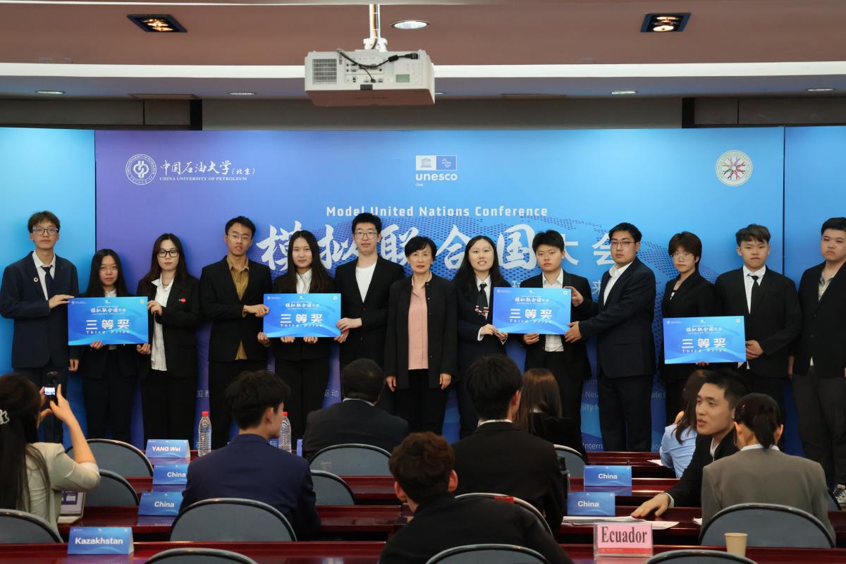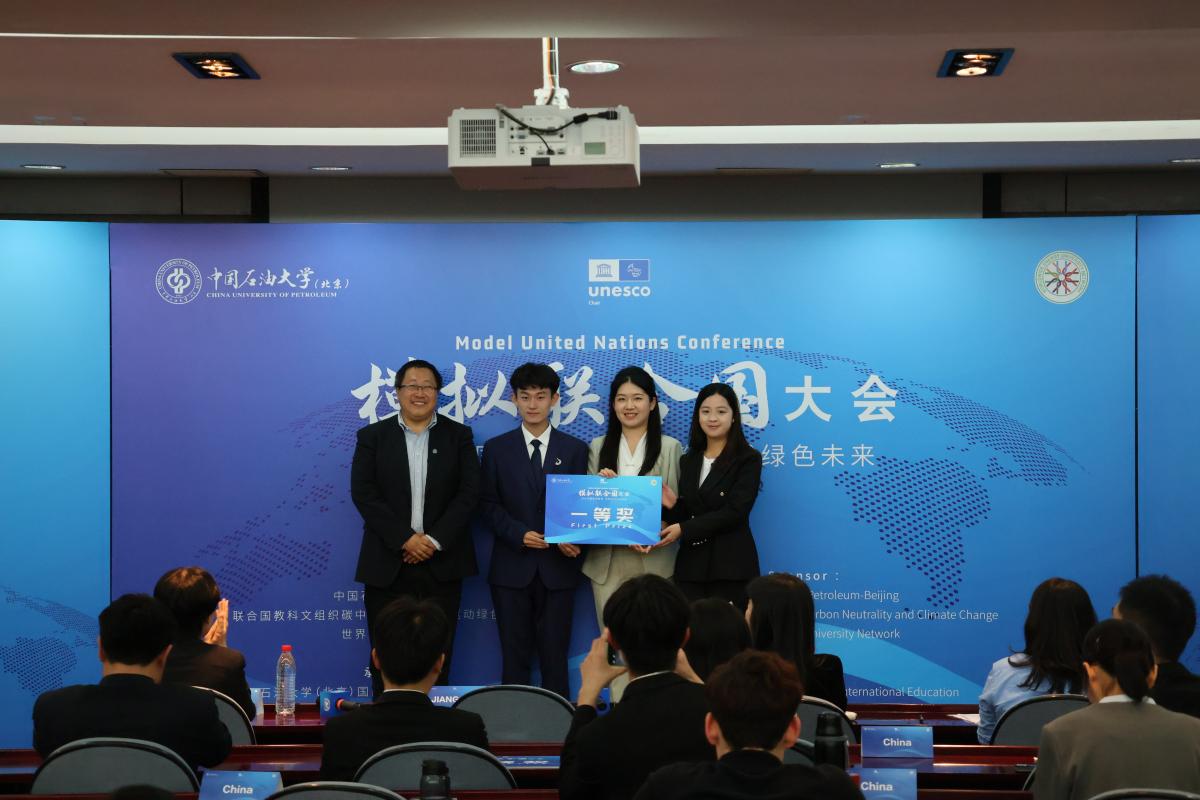 5月7日,以“讲好中国能源故事,共筑全球绿色未来”为主题的模拟联合国大会在中国天天色天天(北京)举办。中石大副校长张广清,联合国工业发展组织投资和技术促进办公室(中国・北京)环境与气候议题负责人姜灏,中科浩博国际教育科技(北京)有限公司总裁孙中雯,学校国际合作与交流处、国际教育学院、教务处、外国语学院相关人员,来自中国、巴基斯坦、土库曼斯坦、南苏丹、蒙古、孟加拉国等24个国家的100名青年学生围绕气候变化、能源转型与可持续发展等议题展开深入对话。
