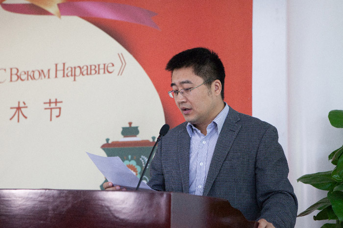 第一届“普希金青年艺术节”一等奖得主曲跃同学也在开幕式中进行了发言。在发言中,曲跃同学回忆了去年参加比赛的点点滴滴,以及获奖之后为期一周的莫斯科之行,并对噶琳娜老师和尤利娅老师的关心与照顾表示了由衷地感谢。曲跃同学表示,一定会发挥自己的作用,努力为中俄双方青年之间的交流作出贡献。