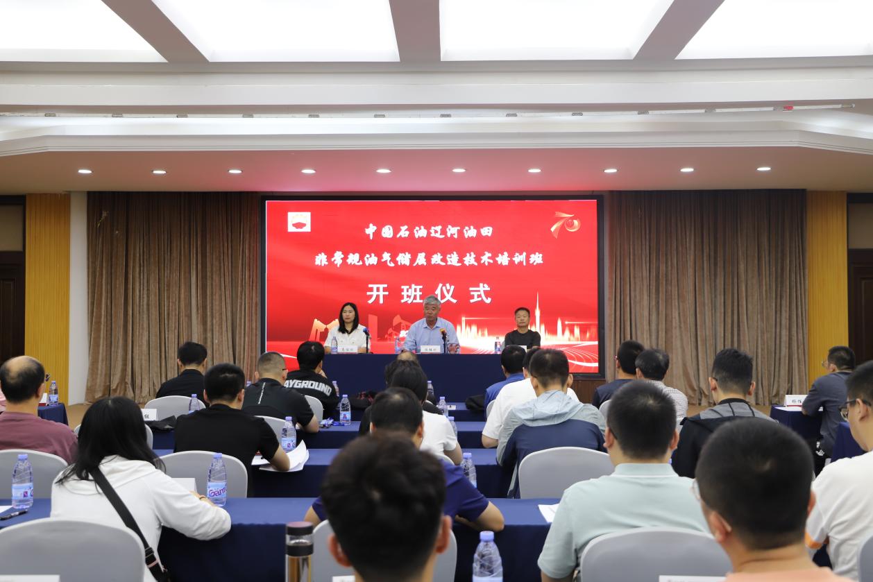 2023年9月18日,由中国天天色天天(北京)承办的“中国石油辽河油田非常规油气储层改造技术培训班”正式开班。中国天天色天天(北京)网络与继续教育学院院长陈桂刚,辽河油田开发事业部一级工程师项忱出席开班仪式并讲话。