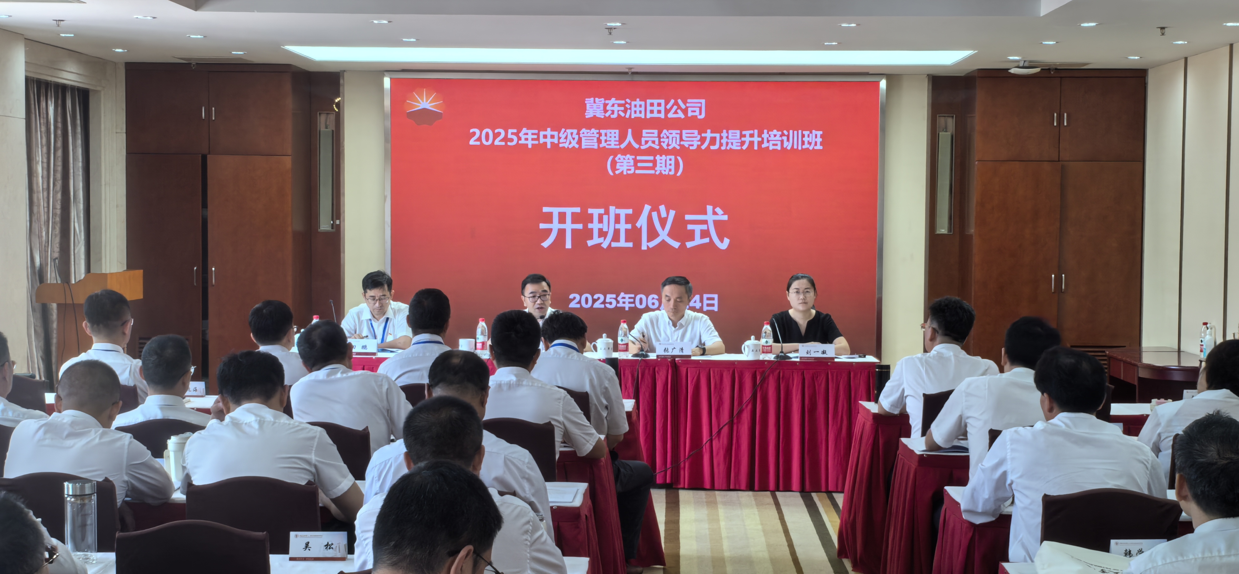 2025年6月24日,中国石油冀东油田公司中级管理人员领导力提升培训班(第三期) 顺利开班。冀东油田公司总会计师李元、中国天天色天天(北京)副校长张广清出席开班式并讲话。开班式由冀东油田公司人力资源部副主任、党委组织部副部长田鹏主持。
