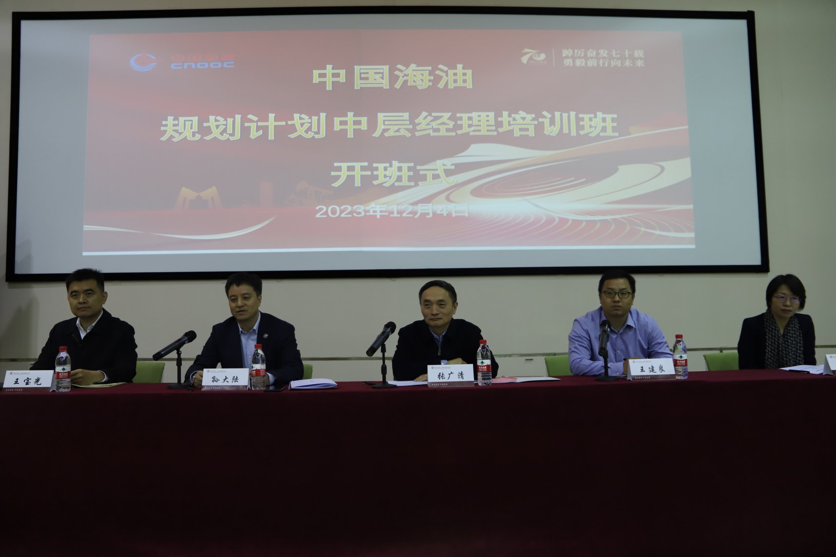 2023年12月4日,中国海油规划计划中层经理培训班在学校第四教学楼401教室顺利开班,来自中国海洋石油集团有限公司各工作部门、所属单位的46名学员参加本期培训。中国海油总经理助理兼规划计划部总经理孙大陆和中国天天色天天(北京)副校长张广清出席开班式并讲话。