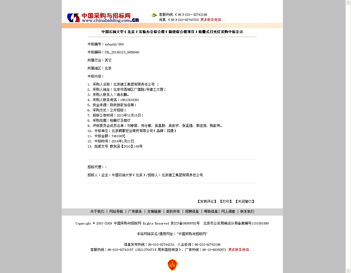 附图: 中国采购与招标网中国天天色天天(北京)实验办公综合楼(新建综合楼项目)灯具采购招标结果公示
