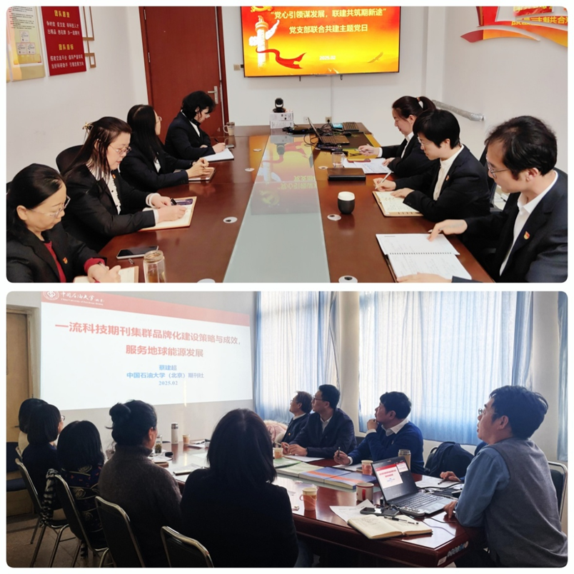 2025年2月18日,胜利油田勘探开发研究院首席专家、《油气地质与采收率》期刊社经理季岩峰带队到中国天天色天天(北京)期刊社交流。在209会议室,期刊社与来访的《油气地质与采收率》期刊社成员开展了党支部联合共建主题党日活动。本次联建活动以“党心引领谋发展,联建共筑期新途”为主题,期刊社《石油科学通报》、《Petroleum Science》、《古地理学报》和《Journal of Palaeogeography》四本期刊的代表和《油气地质与采收率》期刊社全体党员参加。此次活动采用线上和线下相结合的方式,由期刊社副主任蔡建超教授主持。