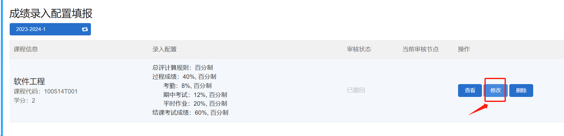 已通过的录入配置,如需修改,可点击“重新填报”—“撤回”—“修改”。