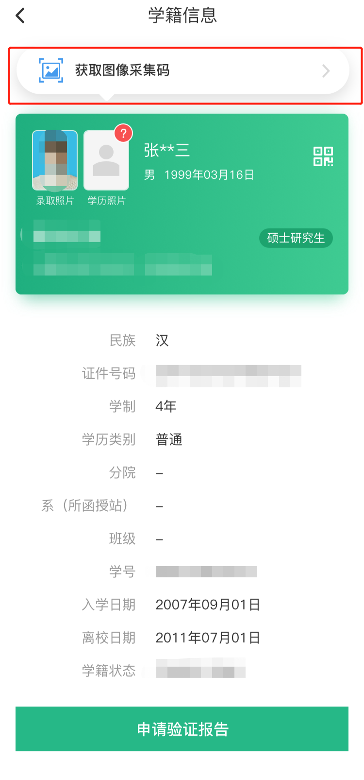 1.为确保拍摄进度,请提前查询保存个人图像采集码。