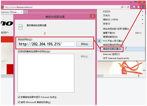 一、IE8,IE9,IE10,在IE窗口下按下“F10”按钮后,顶端处会出现工具栏,点击“工具-兼容性视图设置” , 将综合教务系统的网址:"http://202.204.193.215/"添加入列表即可。