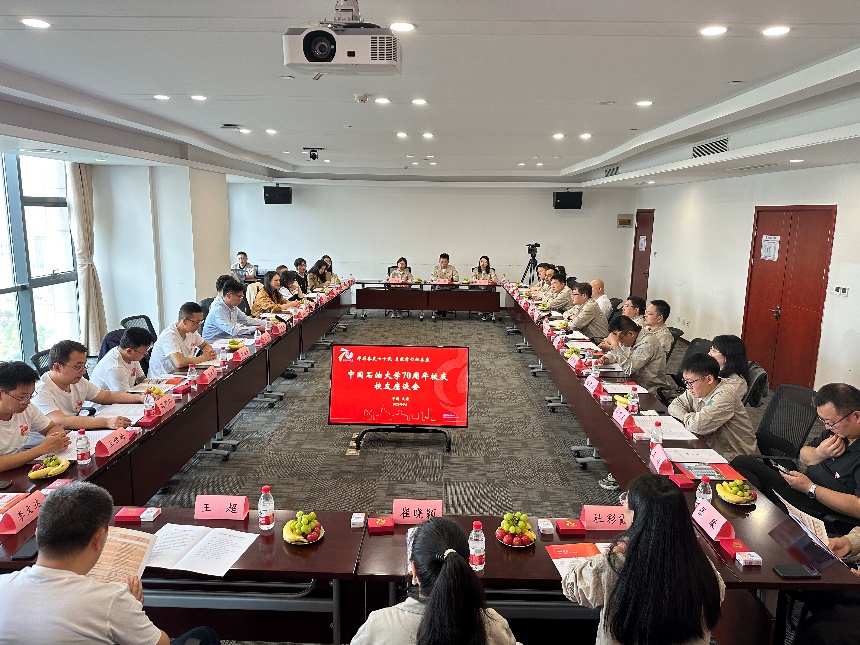 闫亮亮对校友们多年来在促进校企合作中作出的努力表示感谢,希望校友们继续发挥石油人不怕苦不怕累的精神,在支持母校发展、服务国家能源重大战略需求等方面作出更大贡献。座谈会后,闫亮亮一行与校友们共同唱响《我为祖国献石油》。