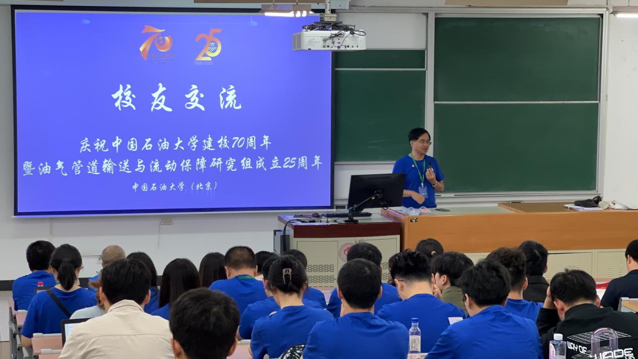 于达教授作为研究组教师代表发言,他欢迎毕业生返校,号召更多中石大学子投身油气储运行业、为国家的繁荣富强、为中华民族伟大复兴贡献自己的力量。国家管网集团西气东输分公司高级专家吴岩作为毕业生代表发言,她分享了在母校学习生活的珍贵回忆,对学校及研究组的栽培表示感谢,为母校70华诞献上最诚挚的祝福,鼓励在校同学努力学习、投身祖国能源事业。