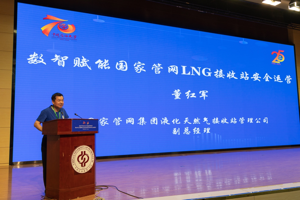 特邀报告环节由梁永图和王玮主持。桑广世作了题为“管网集团创新公司的业务与技术方向”的报告,从公司业务及发展方向等方向开展介绍,着重统筹引领工程建设技术进步与创新,统一设计理念、统一行业标准,为工程项目前期和设计全过程管理提供全方位支撑服务,充分保证“全国一张网”规划下,油气储运设施的统一性、完整性、科学性、先进性、适用性;张鹏就“新形势下油气管道行业的挑战与思考”为切入点,提出要着重抓好数字化、低碳化顶层规划,与油气行业技术深度融合,挖掘数据价值,做好能源结构转型;储祥萍作了题为“智能工厂3.0建设思考”的报告,从智能工厂建设出发,着重探讨深化数字化转型的改革战略,用数字构建“企业大脑+未来工厂”,实现业务赋能。李清平作了题为“我与“油气管道输送与流动安全保障研究组”合作22年的成果”的报告,回顾了与研究组22年的合作;董红军从“数智赋能国家管网LNG接收站安全运营”为切入点,提出要锚定痛点,提前规划,做好统建系统的结合,以数智打破困局,赋能LNG站场安全运营。宫敬教授做油气管道输送与流动安全保障研究组25年研究生培养与科研回顾汇报,回顾研究组25年来的研究历程,为我国能源行业做出的突出贡献,号召大家不忘峥嵘岁月,勇攀时代高峰。会议最后,与会人员同唱校歌“我为祖国献石油”,为母校70周年华诞送上祝福。