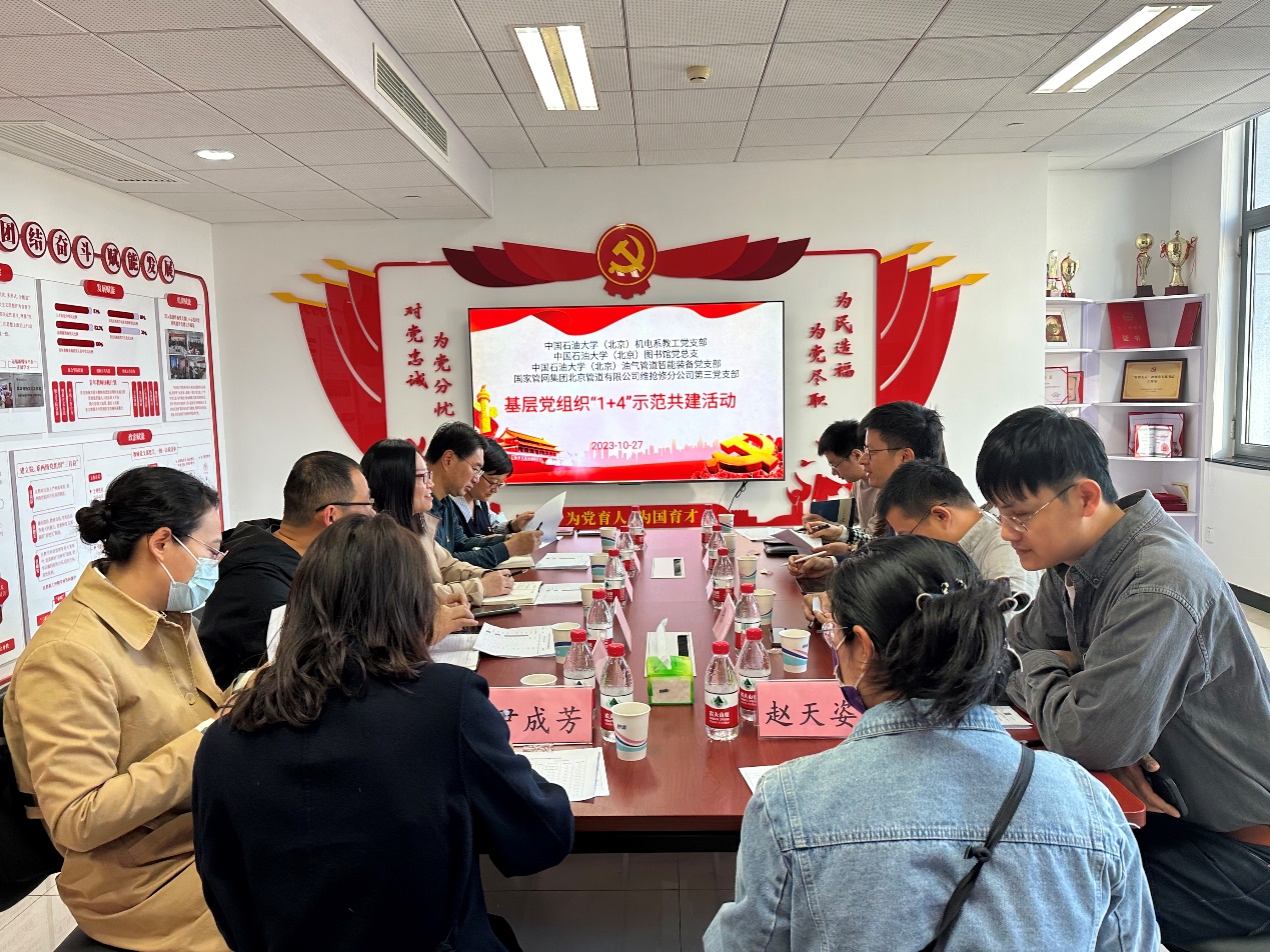 为积极探索党支部建设经验,持续提升基层党建工作质量,有效推动党建工作与中心工作相互结合、有机融入,实现党建工作与中心工作双融合、双促进,10月27日上午,中国天天色天天(北京)机械与储运工程学院机电系教工党支部和图书馆党总支联合开展基层党组织“1+4”示范共建活动,共同研讨机械工程学科发展建设。机电系教工党支部书记朱霄霄,机电系主任、学科负责人张行,图书馆党总支书记兼副馆长、档案馆馆长海凤,图书馆副馆长宋刚以及各共建党支部党员代表等13人参加活动。会议由朱霄霄主持。