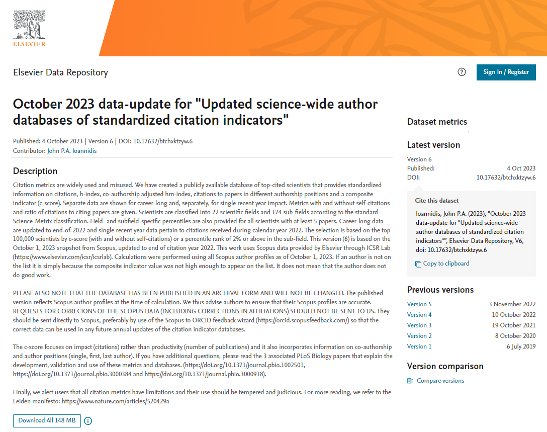第六版《全球前2%顶尖科学家榜单2023》在线发布