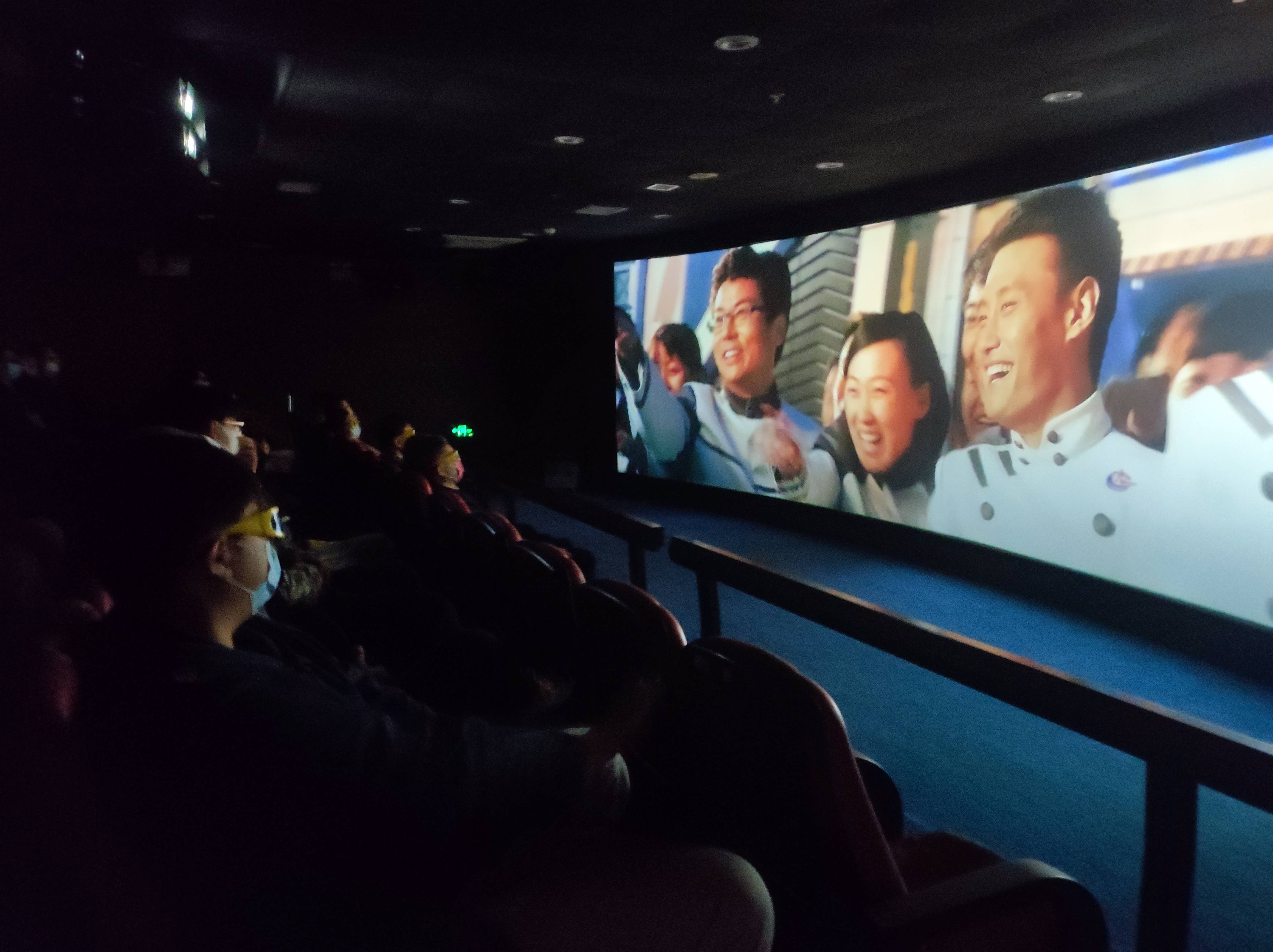 参展活动首先从位于学生活动中心的蓝海4D影院观看《石油梦想家园》和《海油家园》两部影片展开。两部影片分别讲述了石油演变过程的百亿年时光和人类面对自然环境和科技发展的境遇与抉择。观影过程中,影片情节引人入胜,全体党员沉浸其中,深刻感受石油演变的过程与其中艰难,深入理解了历久弥坚的石油精神。通过观看电影,更深刻的将石油精神烙刻在心中,更加坚定了大家“实事求是,艰苦奋斗”的信心和决心。
