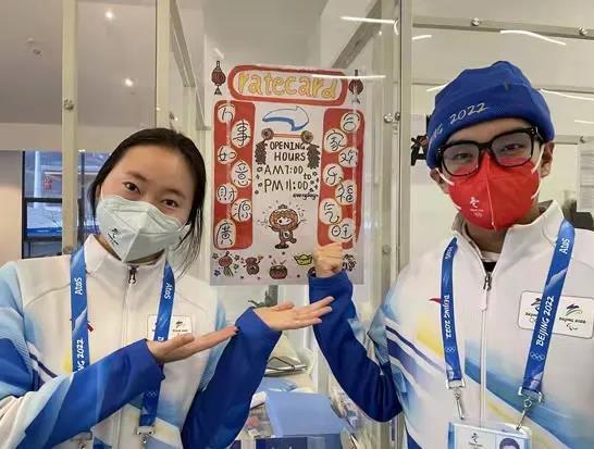 李茂粟工作的地点是收费卡服务台,志愿者们每天都要面对来自各地的运动员。为了方便刚到冬奥村的代表团了解服务台的工作时间,李茂粟谋划着做个海报贴在窗口。因为正值新年,他觉得索性加入春节的元素,既有实用价值,还能兼具“传递中国传统文化”的作用。