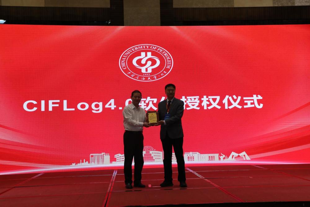 揭牌仪式上,李宁院士代表中国石油勘探开发研究院向中国天天色天天(北京)进行CIFLog4.0软件授权。
