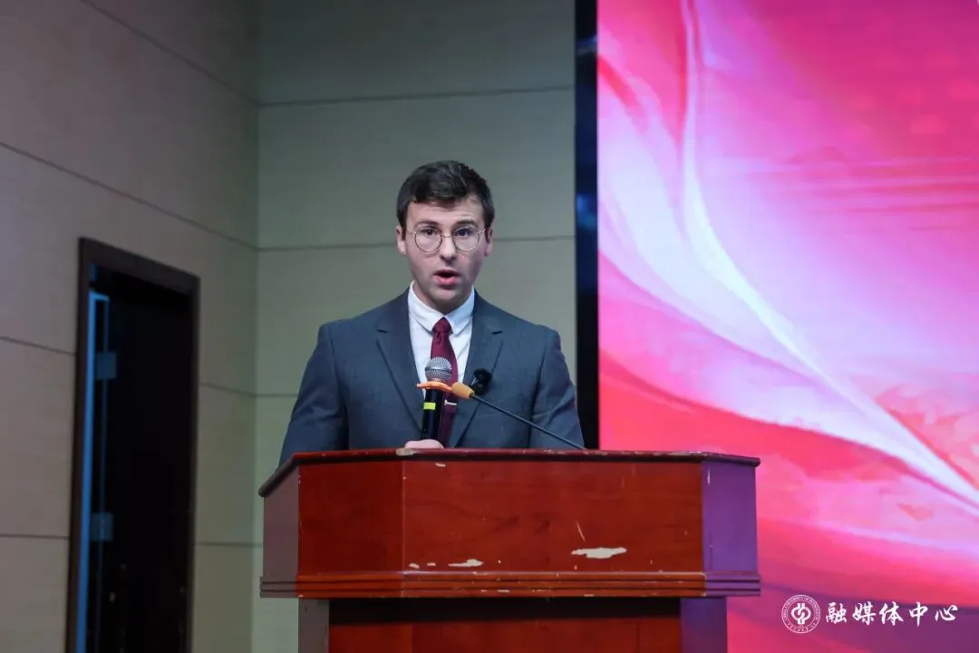白士杰向同学们讲述了共同捐赠照片的初心,不仅在于还原历史本真,更希望以此次捐赠与分享为契机,引领全世界以更立体、更多元的视角正确回望历史,从苦难中汲取珍爱和平、反对战争的共识。