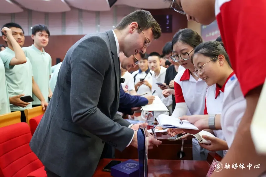 在互动提问环节,青年学子们围绕捐赠初心、史料保护、历史教育等问题踊跃提问,马库斯、钟灏松、白士杰一一进行回应,他们表示“历史不应被尘封,和平需要代代守护”,引发在场师生强烈共鸣。