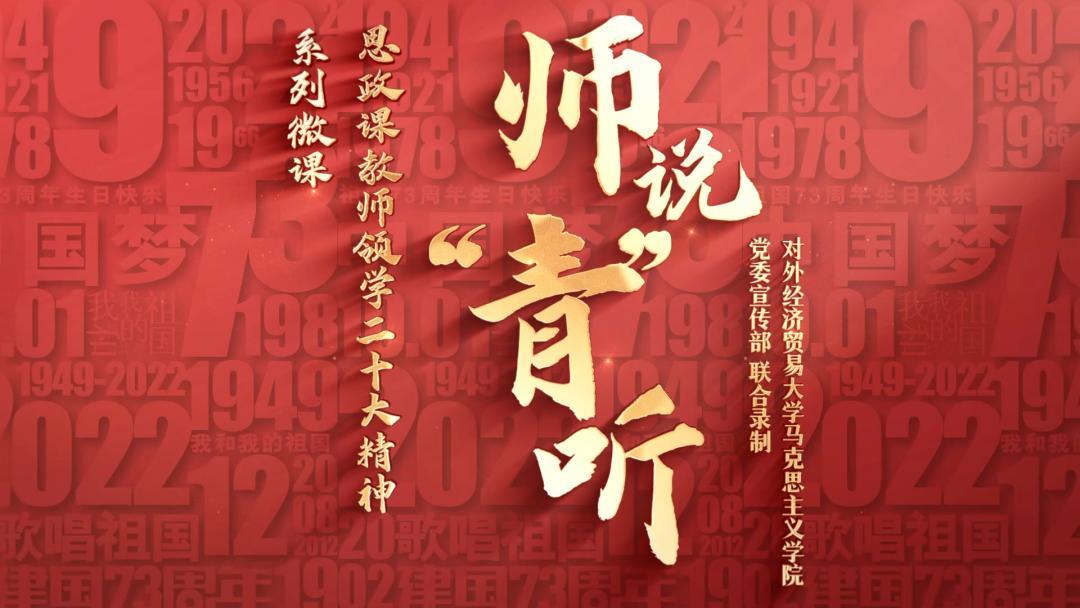 对外经济贸易大学马克思主义学院与党委宣传部推出“师说·‘青’听”——思想政治理论课教师领学“党的二十大精神”系列微课二十讲,通过思政课教师视角,以“小切口”反映“大主题”,以“小故事”讲好“大道理”,以“小课堂”上好“大思政”,让二十大精神走进课堂。