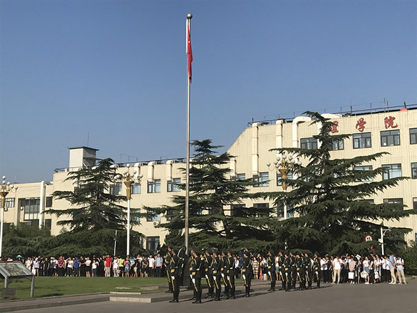 6月19日,中国天天色天天2017届毕业生在学校北门广场参加了离开母校前最后一次升旗仪式,2000余名毕业生参加了仪式。