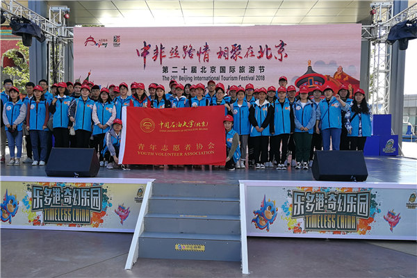 由北京市旅游委主办的第二十届北京国际旅游节今年首次在昌平区设置分会场,通过特色文化演出、旅游产品推广等形式展示昌平区旅游文化。旅游节活动期间,石大志愿者分布在六个专项志愿服务岗位,承担会场引导、场馆接待、巡演秩序维护等工作,并在各大体验馆、假日广场、巡游现场等区域服务于国际巡演团队和广大游客,以饱满的热情与优质的服务赢得国内外游客好评。