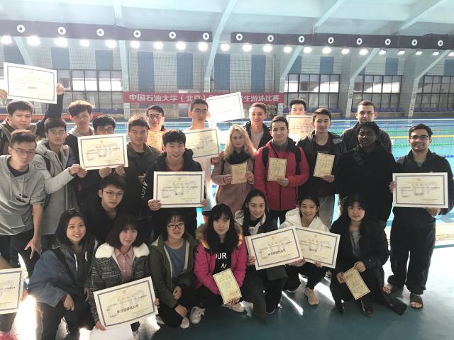 11月17日上午,石大2018年学生游泳比赛在学校游泳馆举行。来自各学院的122位选手参加了比赛。经过18个比赛项目的精彩角逐,地球科学学院、化学工程学院、工商管理学院分别取得团体总分前三名。地球科学学院、化学工程学院、国际教育学院分别荣获“体育道德风尚奖”。