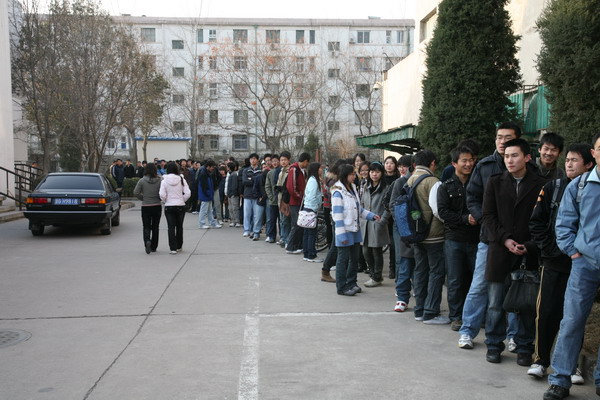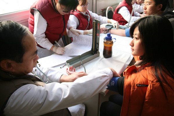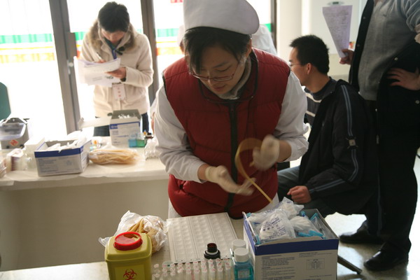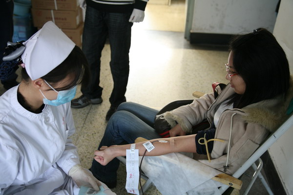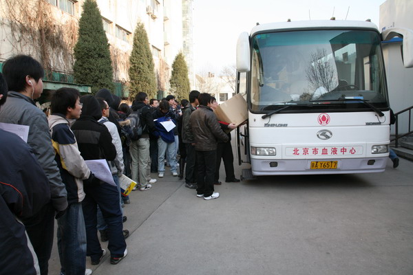 2009228,在校领导、校办、校红会的大力支持下,圆满完成2009年度无偿献血工作。经校医院统计,参加本次无偿献血活动的实际献血人数为315人,采血总量63200毫升,其中近百人两次以上无偿献血。在献血活动过程中,陈大恩副校长多次来到现场看望献血学生和工作人员,献血现场气氛异常感人。学生踊跃参加献血,距献血开始还有一小时时,在校医院门前排队准备参加无偿献血的同学已达到千人。由于北京市血液中心采血人数和准备物品有限,只好将没有拿到表格的同学及时疏散。但仍有数百名学生自愿当体检不合格人员的替补,继续在校医院门前等候。