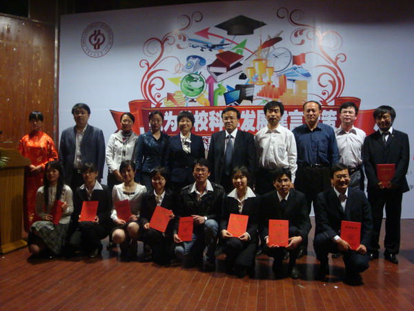 比赛的最后,张来斌校长为参赛同学颁发获奖证书并合影。本次比赛的一等奖由人文社科部的刘晓东同学获得。