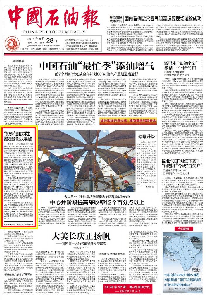 人民网等多家媒体报道第六届“东方杯”全国大学生勘探地球物理大赛决赛