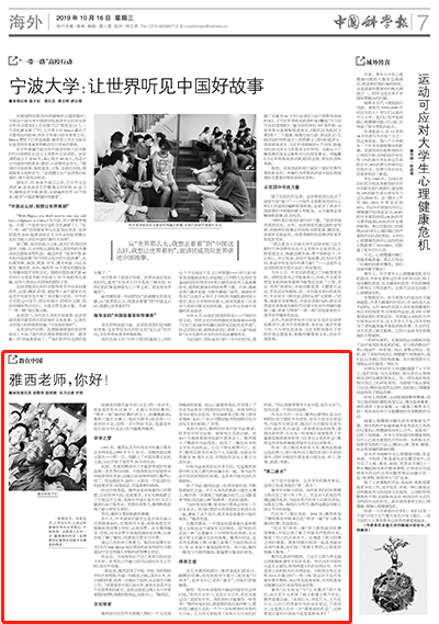 10月16日,中国科学报海外版第七版以《雅西老师,你好!》为题,从求学之梦、文化使者、师者之道和“第二故乡”四个方面介绍了石大苏丹籍教师雅西在石大的从教经历和心路变化。