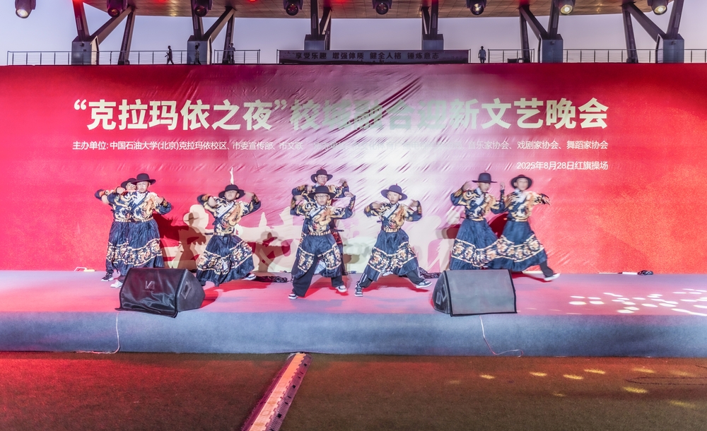 8月28日晚,“克拉玛依之夜”校城融合迎新文艺晚会在克拉玛依校区红旗操场举行,克拉玛依市民、大中小学师生及新生家长齐聚现场,共同感受石油之城的文艺魅力。晚会在管弦乐《我为祖国献石油》中开场,点燃气氛;中石大1998级校友刘文静一曲《如愿》致敬奋斗岁月,唱出家国情怀;《舞乐新疆》演员们身着舞裙,脚步轻快,将天山脚下的鲜活风情尽数展现;《我把新疆唱给你听》悠扬绵长,唱出新疆的辽阔与壮美;《我在天山南北等你来》歌声婉转,传递着新疆人民的好客与热情;师生合唱《万疆》大气磅礴;朗诵《诗词至风润油城》抑扬顿挫、诗韵悠长;穿山甲乐队《疆来》《蓝莲花》联唱将晚会推向高潮,用歌声与乐声传递了天山脚下的石油情、边疆韵。每个节目不仅是艺术的展示,更是克拉玛依精神与城市形象的诠释,呈现出一幅团结奋进、多姿多彩的新疆文化图景。