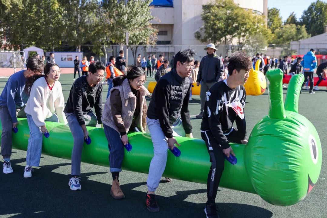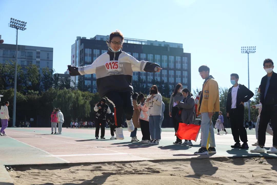 今年比赛研究生组增加了多项竞赛项目,除了长短跑、接力、跳高、跳远、投掷等传统田径竞技项目,本科生和研究生还设置了趣味项目毛毛虫竞速、袋鼠跳等集体比赛项目,助力青年学子在享受竞技比赛乐趣的同时增强体魄、锤炼品格。赛场上,运动员们奋勇争先,用行动诠释着永不言败的体育精神。看台上,啦啦队动作整齐划一,声音激情嘹亮,成为一道靓丽的赛场风景线。赛场上,裁判员们严守规程、秉公裁判;志愿者尽职尽责、热情服务,保障了运动会的顺利进行。