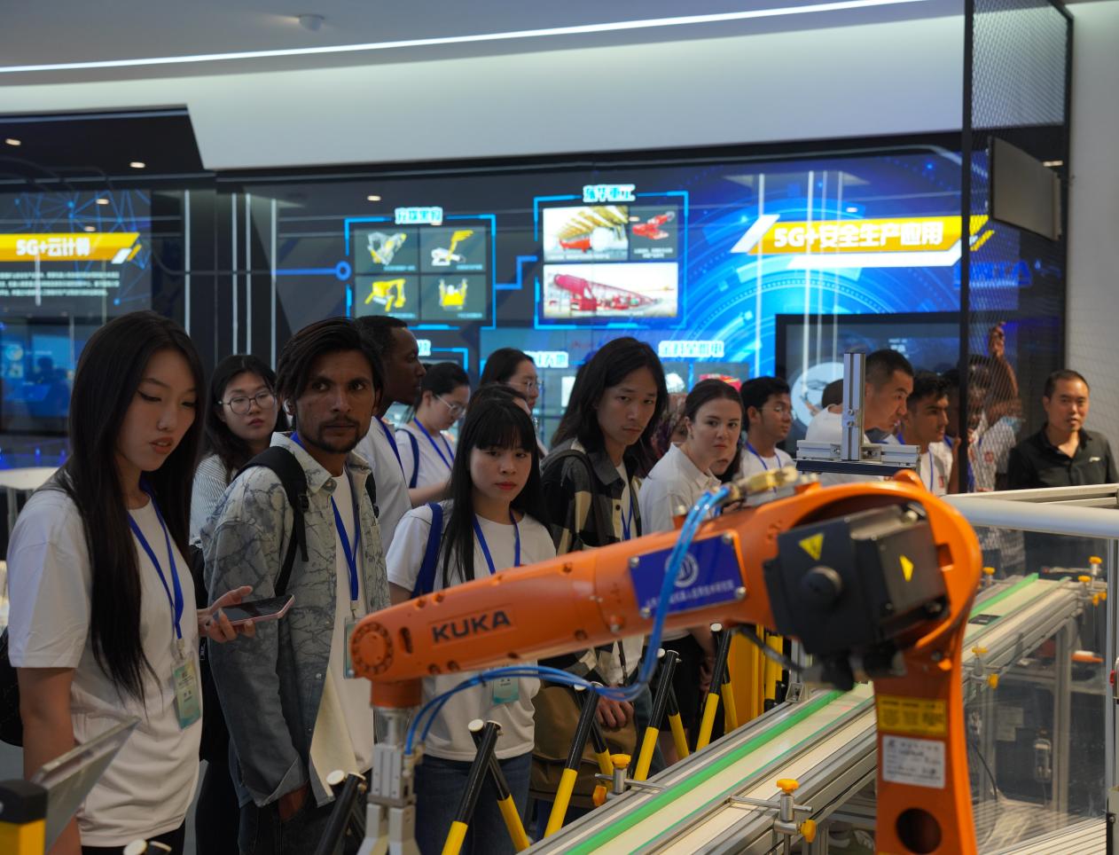 此外,中外学生还参观了山东理工职业学院实训基地、山东省智能机器人研究院、珞石(山东)智能科技有限公司,通过虚拟仿真、VR和无人机等先进技术,沉浸式地体验了职业技能的培训,领略了现代智能制造的精密与高效,见识了人工智能的广阔应用前景和数字技术的快速革新。