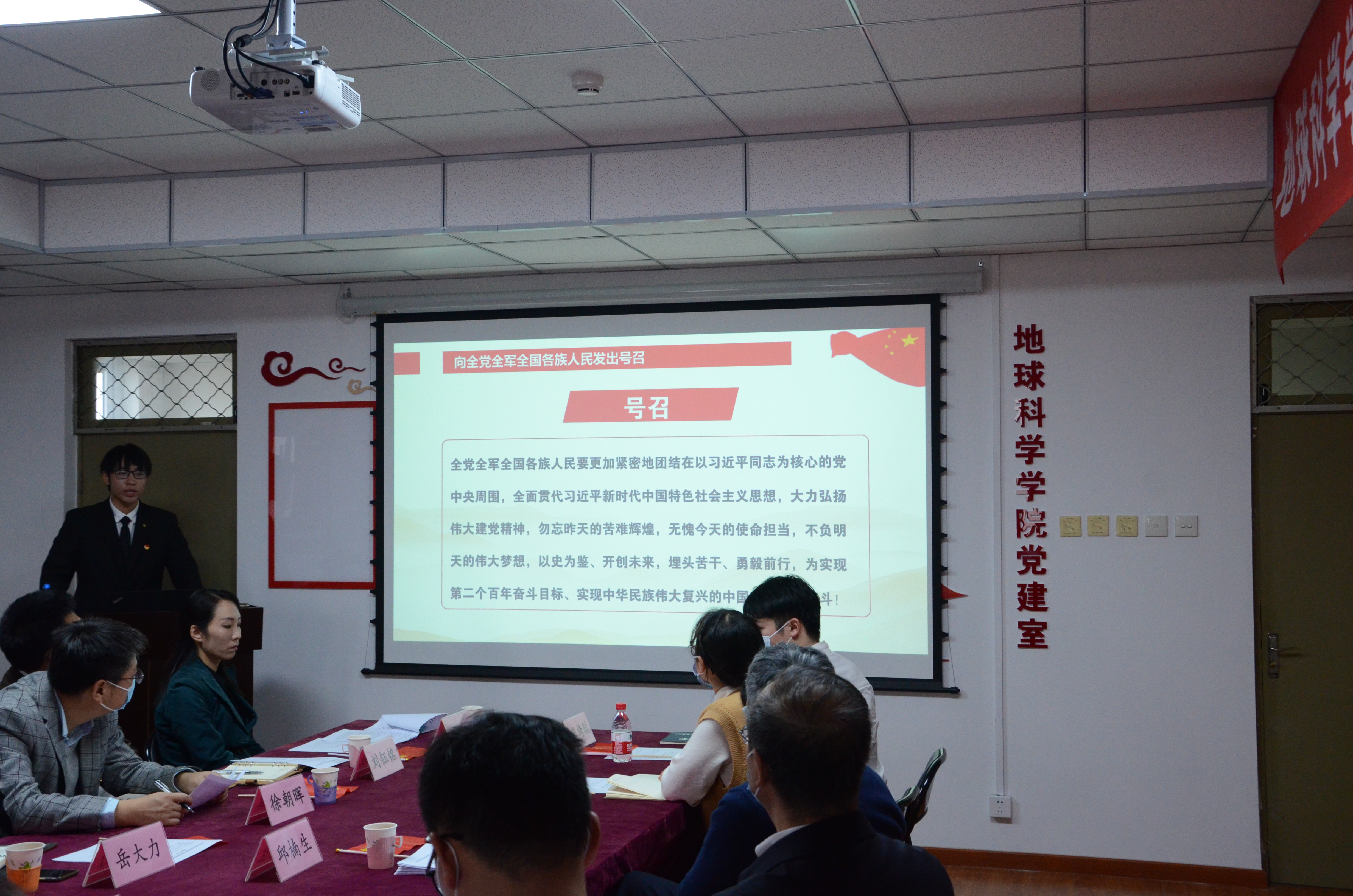 在全体参会人员的掌声中,陈峰为地球科学学院新建的党建室揭牌。全新的党建室、全新的培育模式,激励着学院党建工作再启新征程。