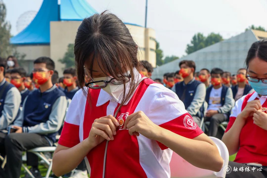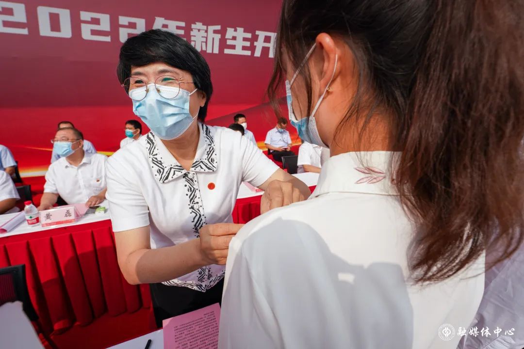 校徽是中石大的标志和象征,凝聚着学校的办学特色、文化传承和大学精神,承载着中石大人的家国情怀和光荣使命。现场参会的嘉宾及全体校领导为新生代表佩戴校徽,寄托着对新中石大人的特别期许。