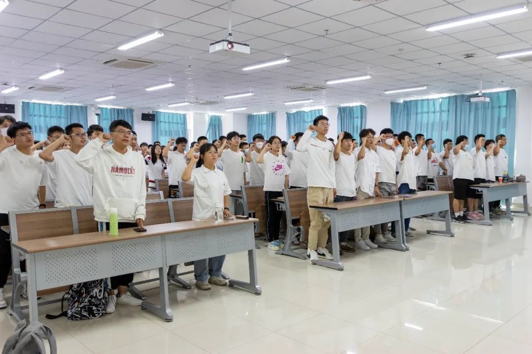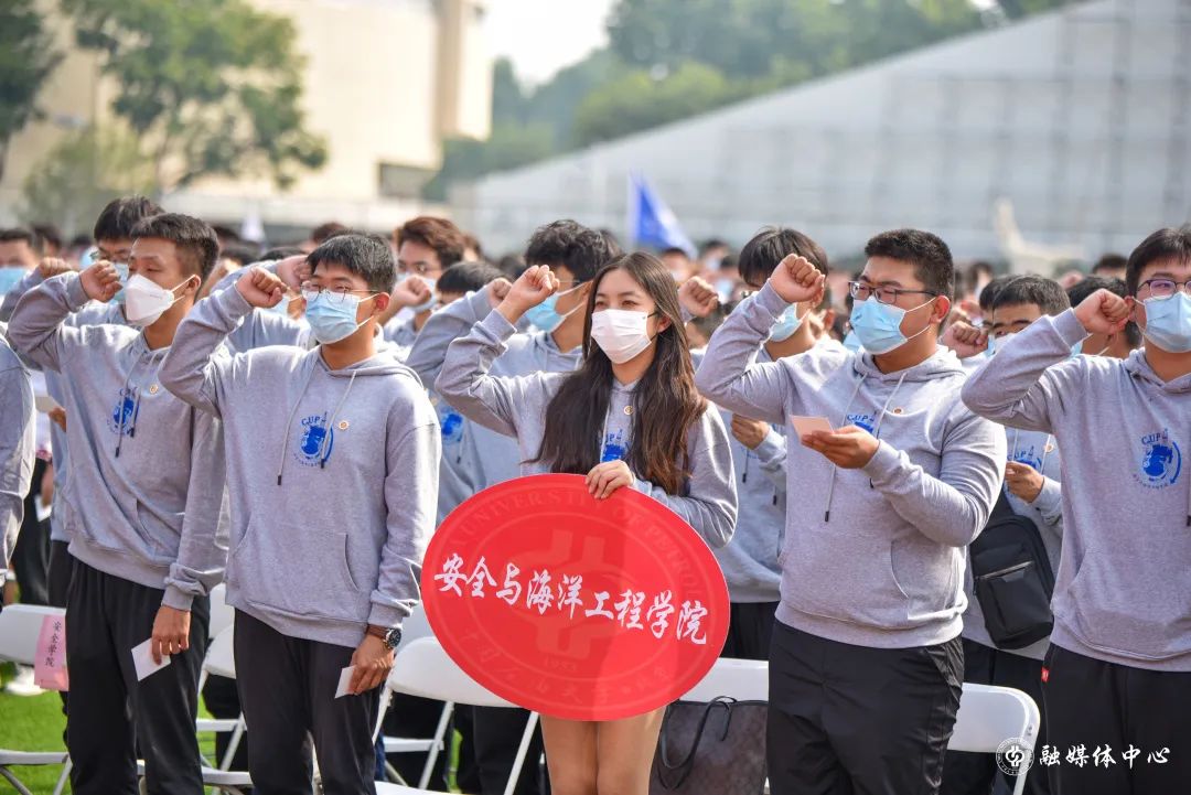 在安全与海洋工程学院本科生修智远的领誓下,全体新生举起右拳、庄严宣誓,“谨记中石大校训,厚积薄发,开物成务……志不求易,事不避难,努力成为可堪大用、能担重任的时代新人!”铿锵有力的誓言奏响新一代中石大人爱党报国的青春旋律。