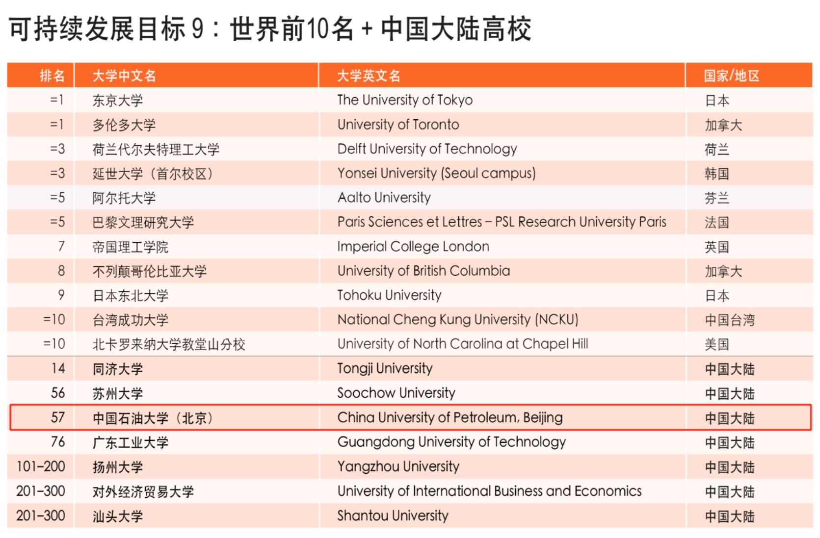 2020年世界大学影响力排名结果发布,中石大位列“产业、创新和基础设施”联合国可持续发展指标国内第3,全球第57
