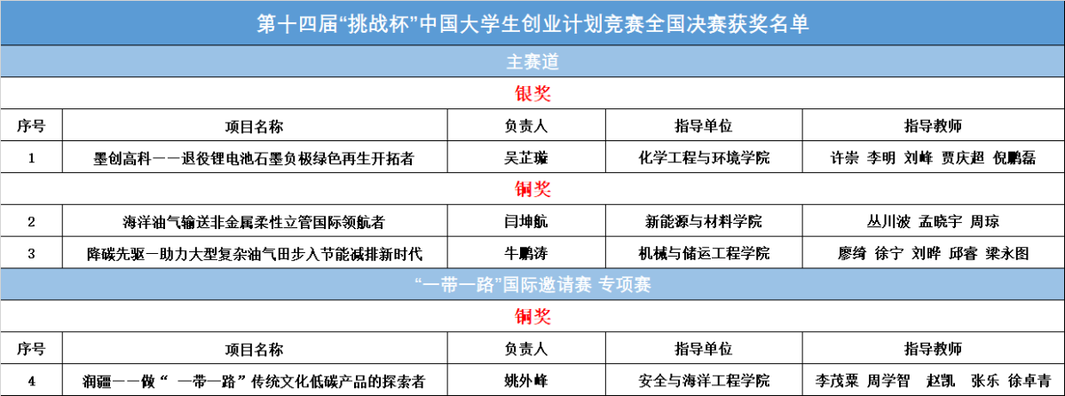 中石大在第十四届“挑战杯”中国大学生创业计划竞赛中获佳绩