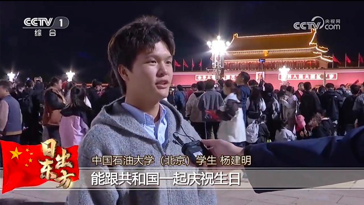 10月1日,天安门广场举行了2024年国庆升国旗仪式,迎着清晨的第一缕阳光,在雄壮的国歌声中,五星红旗冉冉升起。来自新能源与材料学院、梦溪书院200名师生代表与来自首都近2000名大中小学生共同赴天安门观礼台观看升旗仪式;还有一批同学自发前往观看升旗仪式。中央电视台进行了全程记录采访,李荣博、王由、杨昊澎、杨建明、王子豪、马志德、潘敬淇等同学接受了央视记者采访,表达了牢记习近平总书记嘱托,用奋斗书写无悔的青春,为祖国能源事业贡献力量的决心。