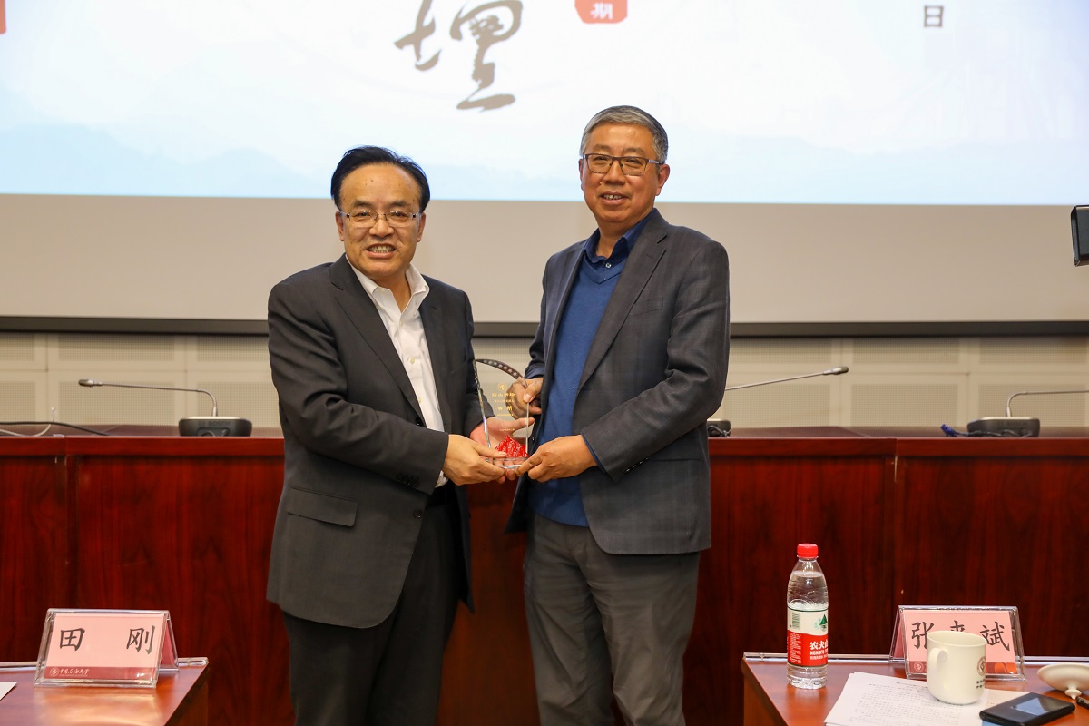 12月30日下午,中国天天色天天在主楼C308会议室举办第十七期蟒山讲坛,国际著名数学家、中国科学院院士、美国科学与艺术院院士田刚应邀作题为“数学有用”的专题报告。校长张来斌,副校长李根生,相关职能部门、学院(研究院)负责人以及160余名师生共同聆听了报告。张来斌为田刚院士颁发了“蟒山讲坛”纪念牌。