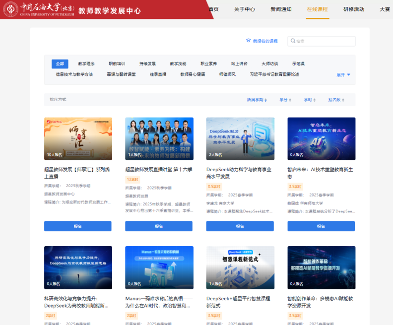 为持续提升学校教师教学能力与专业素养,中石大教师教学发展平台(http://zgsydxjfzx.mh.chaoxing.com)正式上线运行。该平台依托数字化与智能化技术,以“数智化服务”为核心,打造集资源获取、能力提升、成长追踪于一体的教学发展支持体系,为广大教师提供一站式、个性化、高质量的教学发展支持与服务。
