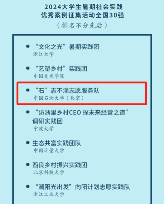 中石大团队入选2024年全国大学生暑期社会实践优秀案例全国30强