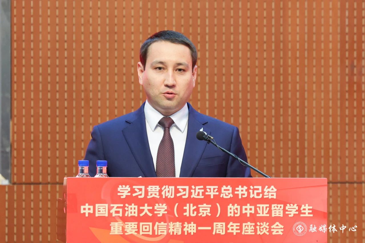 企业代表中国石油中亚俄罗斯公司总经理卞德智,高校代表北京科技大学校长杨仁树,教师代表石油工程学院教授隋微波,联合培养项目单位代表中石油(哈萨克斯坦)阿克纠宾公司副总经理李高潮,留学生校友代表中哈天然气管道合资公司总经理凯伊波夫·叶尔西伊特在发言中,表达了要持续以习近平总书记重要回信精神为指引,共同为推动促进民心相通、构建人类命运共同体贡献智慧和力量。