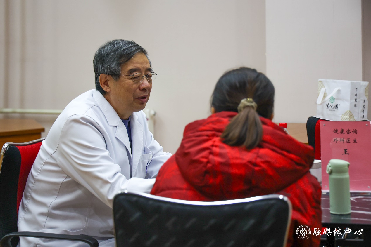 王尚喜医生、李园医生与教职工一对一面诊,解答了教职工关心关注的健康问题,解读个人体检报告,针对体检异常结果从病因、预防和治疗等方面进行了分析并提供了指导建议。