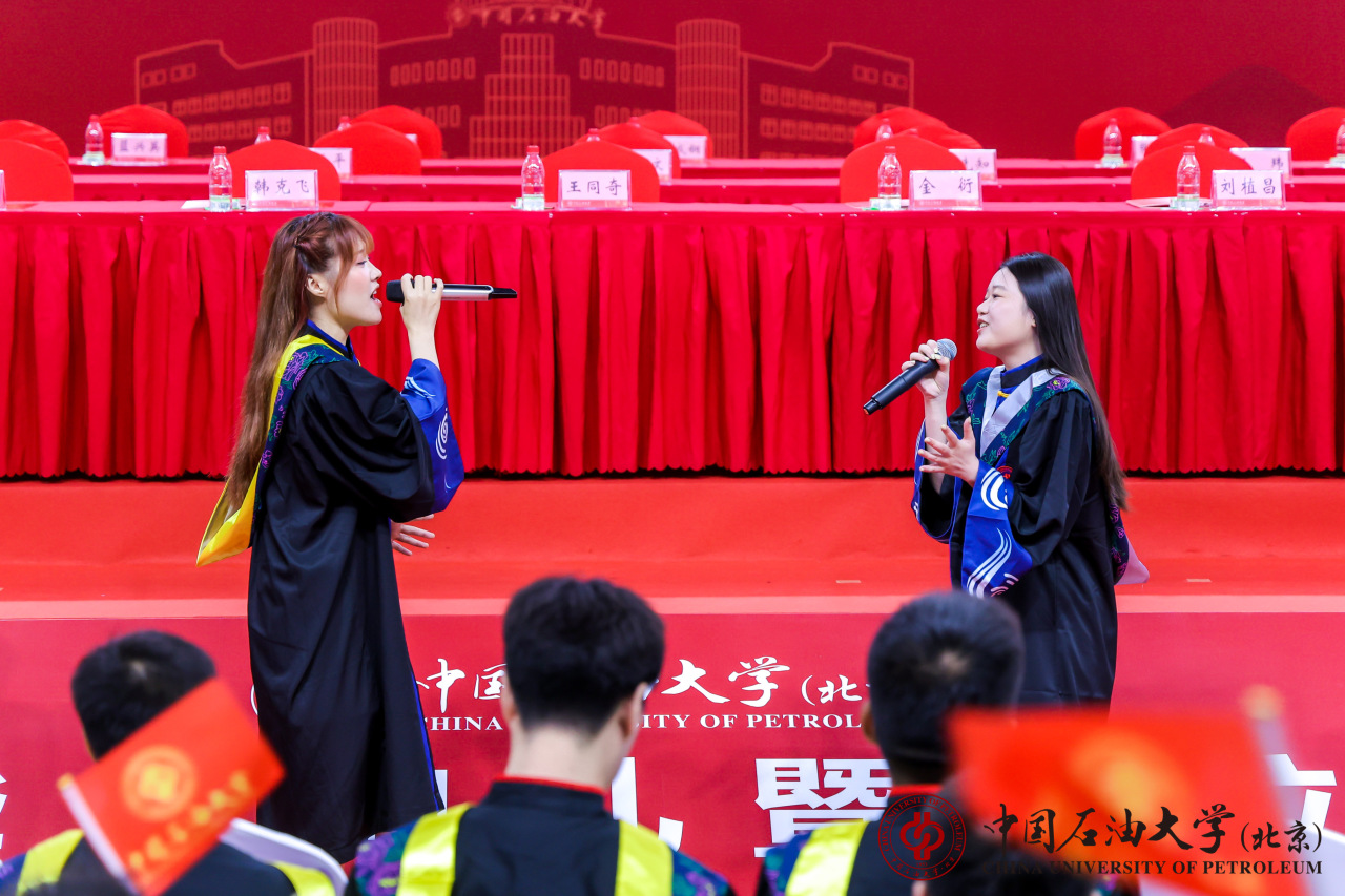 典礼在《我为祖国献石油》的嘹亮歌声中圆满落幕。典礼结束后,学校举行了2025届毕业生学位授予仪式。