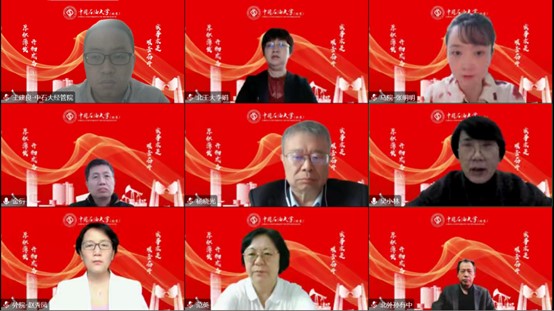 北京大学副校长董志勇,北京外国语大学副校长孙有中,北京航空航天大学经济管理学院院长范英,清华大学马克思主义学院院长朱安东,北京工业大学人文社科处处长李娟,中石大经济管理学院名誉院长、中国科学院系统科学研究所副所长杨晓光等专家参与会议讨论。中石大校长吴小林,副校长金衍,研究生院、科学技术处、人事处、发展规划处等职能部门负责人,经济管理学院、马克思主义学院、外国语学院、体育与人文艺术学院班子成员、系主任、学科负责人、教师代表等100余人线上参会。会议由吴小林主持。