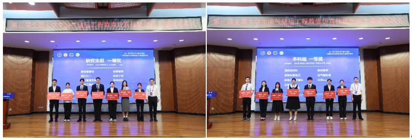 中石大副校长张广清,国家能源局石油与天然气司副司长韩玉柱,国家管网集团总经理助理丁建林,国家管网集团科学技术研究总院院长张对红,中油国际管道公司副总经理张鹏,国家管网集团储运技术发展有限公司副总经理付立武,国家管网集团北方管道有限责任公司副总经理宋飞,国家管网集团工程技术创新公司副总经理冷绪林,中国石油管道局工程有限公司首席专家张文伟,北京云道智造公司、中石化工程建设公司、中海油研究总院、中国仿真学会相关代表以及参赛高校师生出席大赛颁奖大会。
