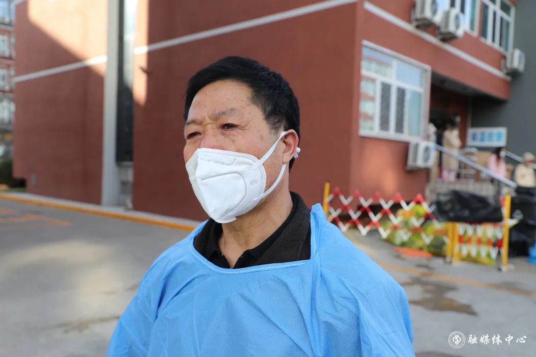 从事保洁消杀的岳建芳:“累肯定是累的,但做好本职工作是我义不容辞的责任。很多老师来到东校园后都住在教室里,每天我看到他们疲惫的样子也很心疼,大家都不容易,共渡难关!”