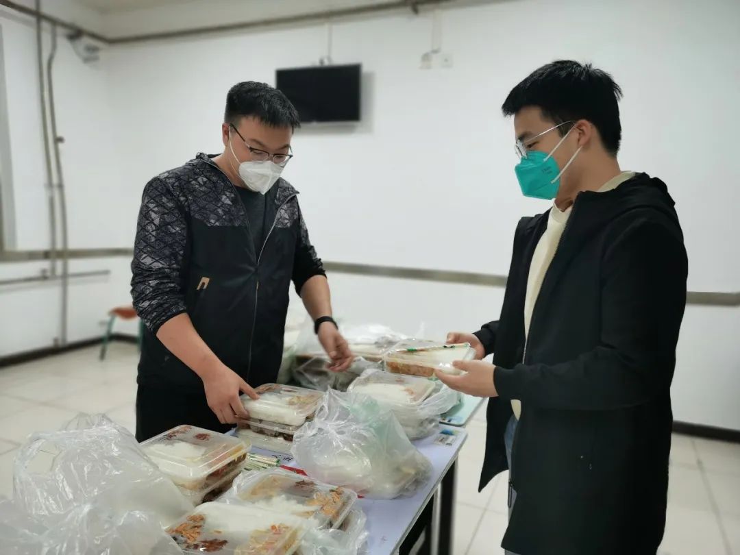 结合楼层情况完善发餐流程,组织志愿者每日发放三餐900余份,帮助同学打印紧急文件,解决求职期间面试环境保障,还自费购买水果发给班级同学。